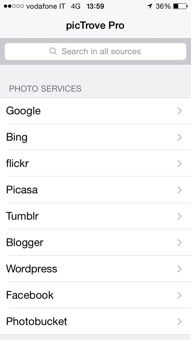Girando sul web ho trovato l’applicazione che, secondo me, per questo tipo di ricerche è perfetta. Sto parlando di PicTrove Pro, questa applicazione è disponibile per iOS e costa 9,99€ (2,69€) e per Android c’è una versione simile che si chiama PicTrove2 ed è gratuita. Io ho provato la versione per iOS e anche se il prezzo è alto (io quando l’ho presa costava 2,69€) la mia valutazione è più che positiva, specialmente se la utilizzi per lavoro.
