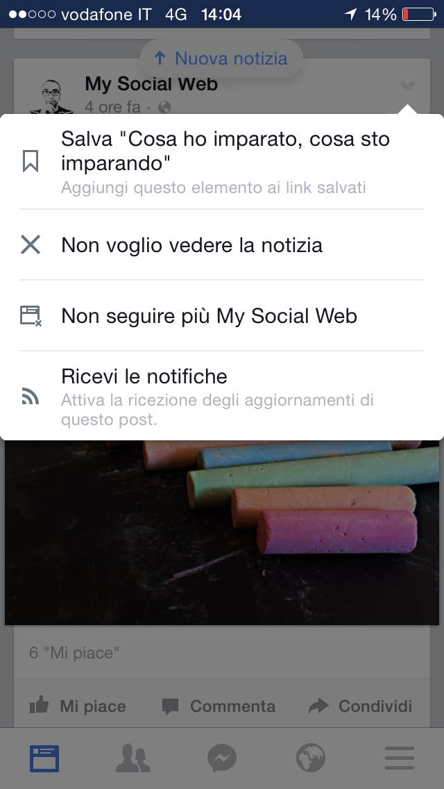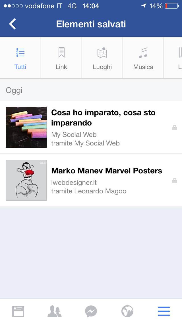 Dovete cliccare sulla voce Salva, a questo punto il post (con il link) viene salvato nella sezione Elementi Salvati.