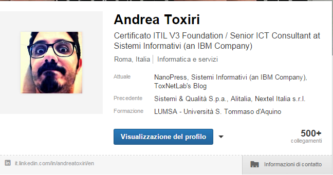 - Posizione e Certificazioni: se attualmente lavori o hai preso una certificazione rilevante (PMP, CISCO, ITIL etc…) inseriscili, in questa maniera chi sta leggendo il tuo profilo ha già un idea che tipo di lavoro svolgi.